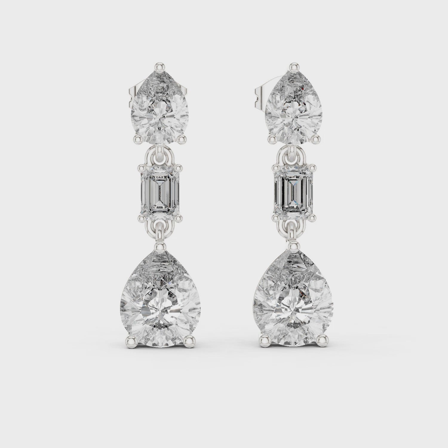 Aarielle Cascade Diamond Drop Earrings are a striking expression of fluid elegance and modern luxury. Designed in a graceful vertical arrangement, each earring features a sequence of brilliant-cut and step-cut diamonds that flow seamlessly into one another, creating a captivating cascade of light. The combination of shapes adds visual contrast and depth, enhancing the overall brilliance and sophistication of the design.