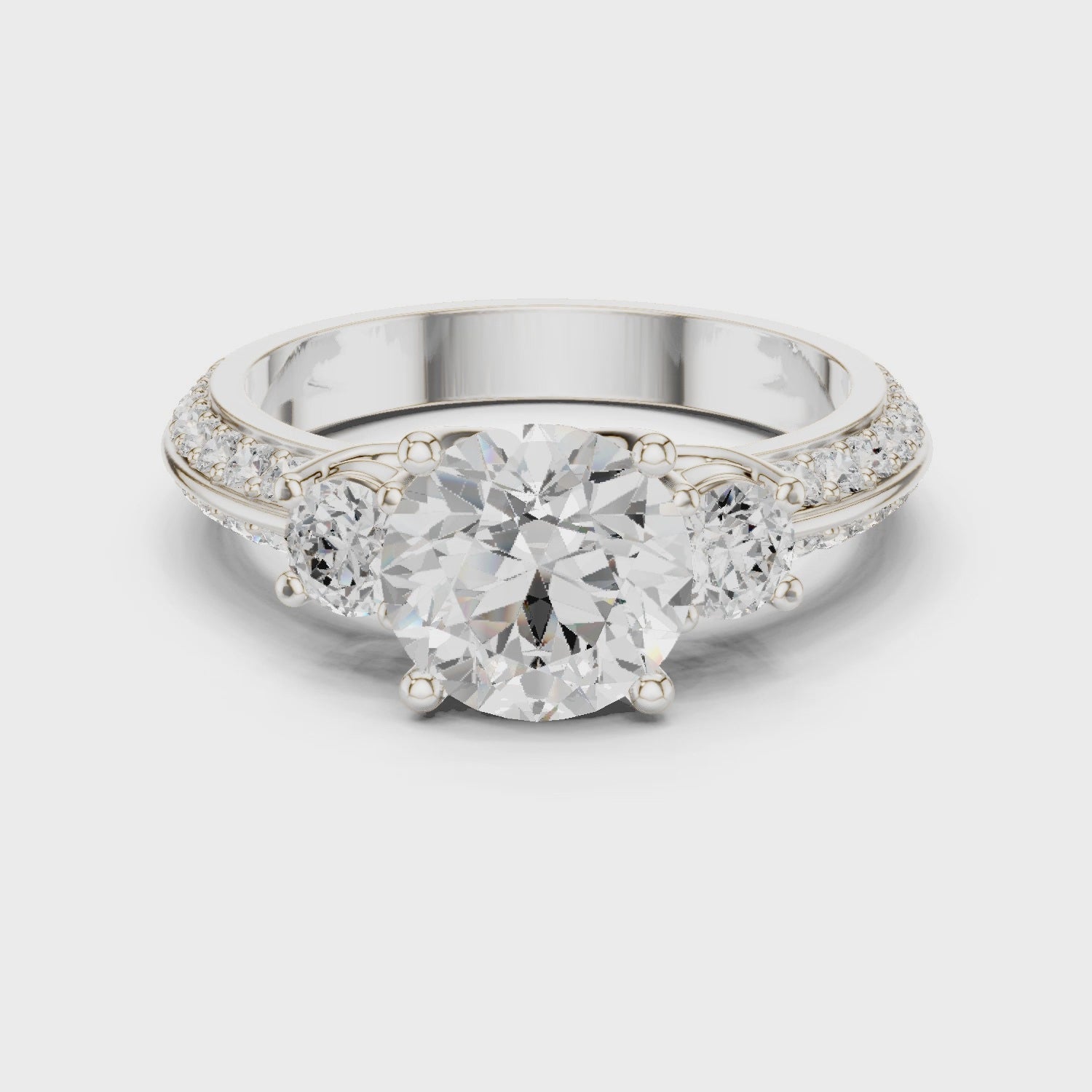 Crafted in premium 925 silver, this elegant three-stone ring is designed to symbolize balance, love, and timeless connection. The brilliant round center stone is elevated in a secure prong setting, allowing maximum light reflection for exceptional sparkle and clarity. Flanked by two perfectly matched round side stones, the design creates a harmonious flow and enhanced brilliance from every angle.